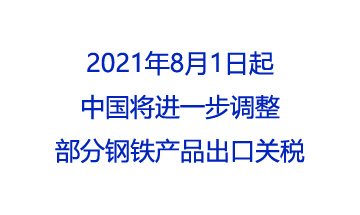 • 2021年8月1日起中國將進一步調整部分鋼鐵產(chǎn)品出口關稅